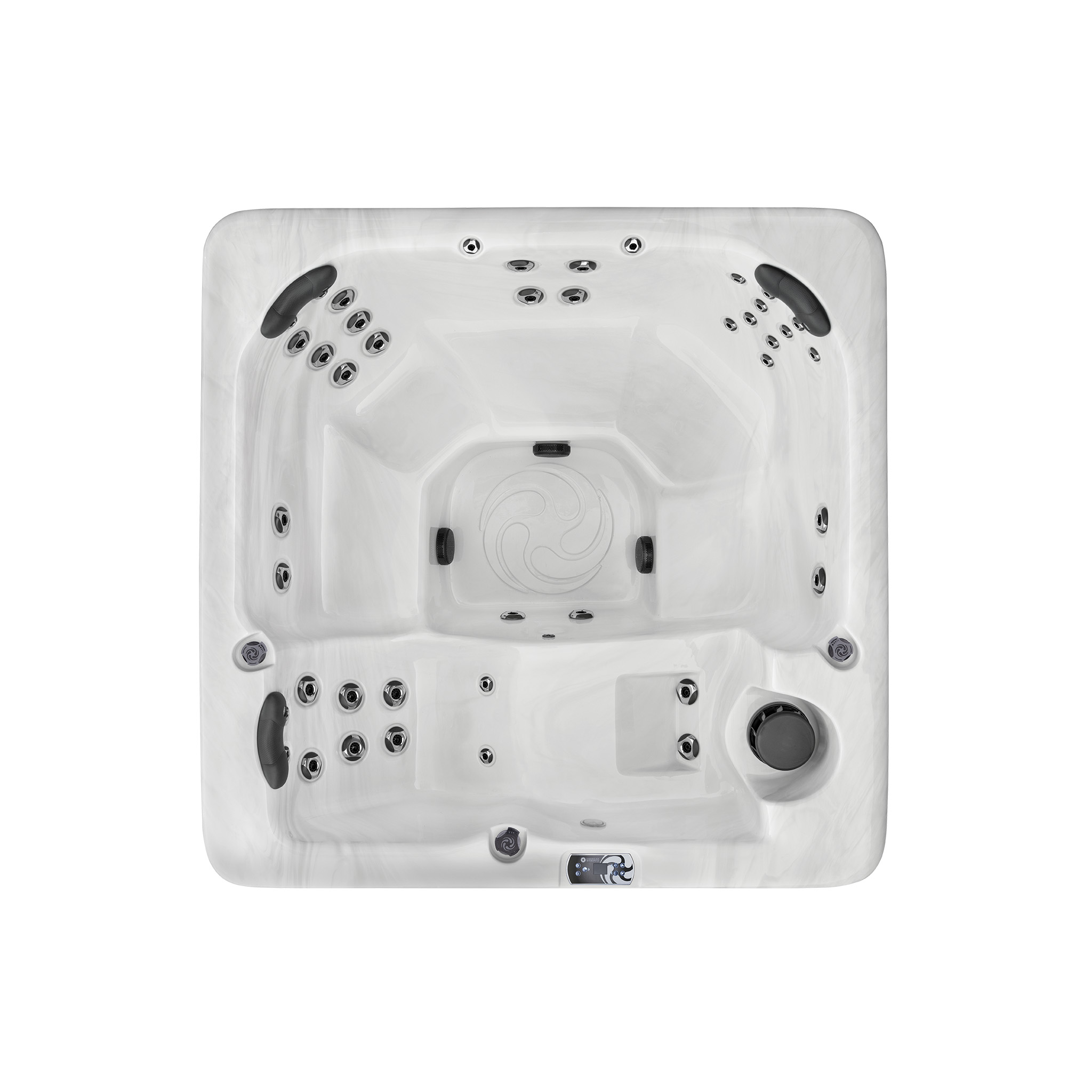 With spacious seating for up to six people, the American Whirlpool® 171 has a luxurious lounge with foot jets, as well as two other corner massage seats to provide back relief from multiple locations.